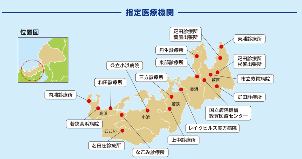 [敦 賀 市] 市立敦賀病院、国立病院機構敦賀医療センター、東浦診療所、疋田診療所、杉箸出張所、葉原出張所